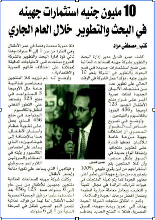 قنديل: 10 مليون جنيه مصري يتم تخصيصها لوحدة البحث والتطوير للانتهاء بمنتجات مبتكرة تلبي الاحتياجات الدقيقة لعملائنا